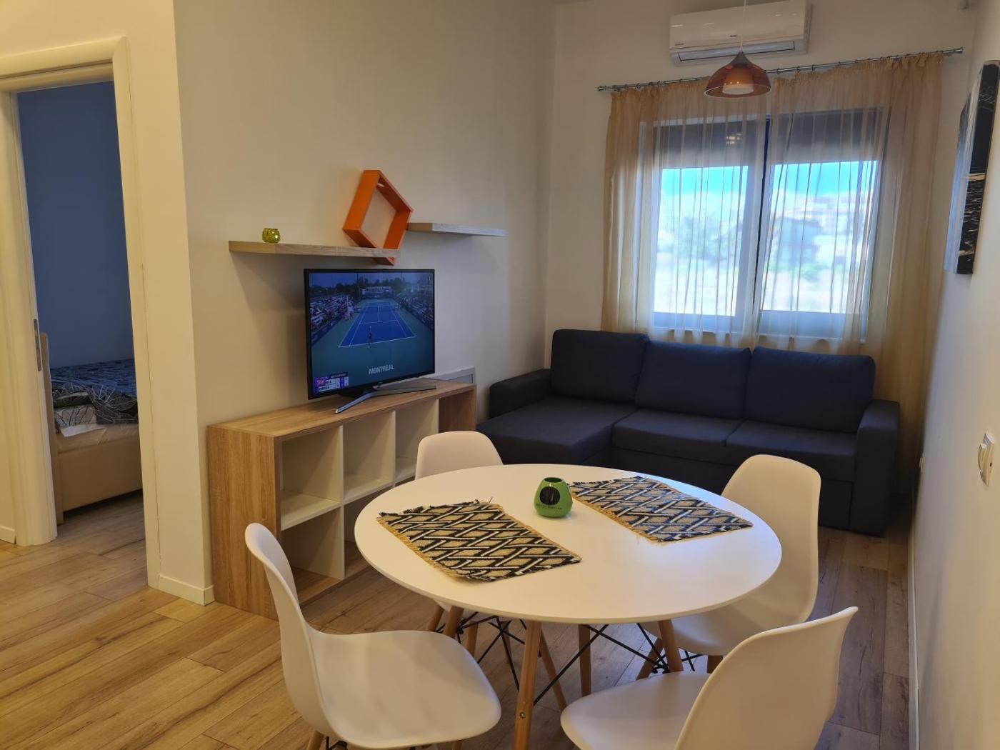 One-Bedroom Apartment. Featuring a private entrance, this air-conditioned apartment consists of 1 living room, 1 separate bedroom and 1 bathroom with a bath and a hairdryer. The apartments kitchen, which features a microwave, is available for cooking and storing food. The apartment provides a washing machine, soundproof walls, a tea and coffee maker, a flat-screen TV with streaming services, as well as garden views. The unit offers 2 beds.