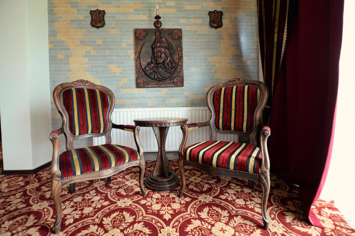 Guests will find units decorated in dark brown and red tones, fitted with a fireplace. The rooms feature air conditioning, a flat-screen TV with satellite channels, a sofa, a seating area and a desk. Private bathrooms are included. Some of the rooms of Castel Transilvania also have a balcony or a terraceyou can relax.