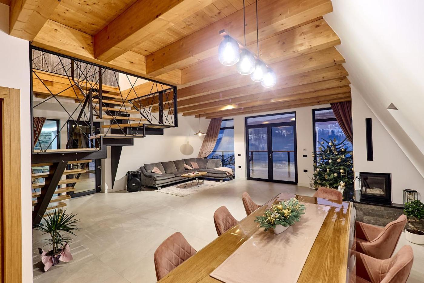 The spacious chalet has 4 bedrooms, 4 bathrooms, bed linen, towels, a flat-screen TV with cable channels, a dining area, a fully equipped kitchen, and a terrace with mountain views. Guests can take in the ambience of the surroundings from an outdoor dining area or keep themselves warm by the fireplace on colder days. The accommodation is non-smoking.