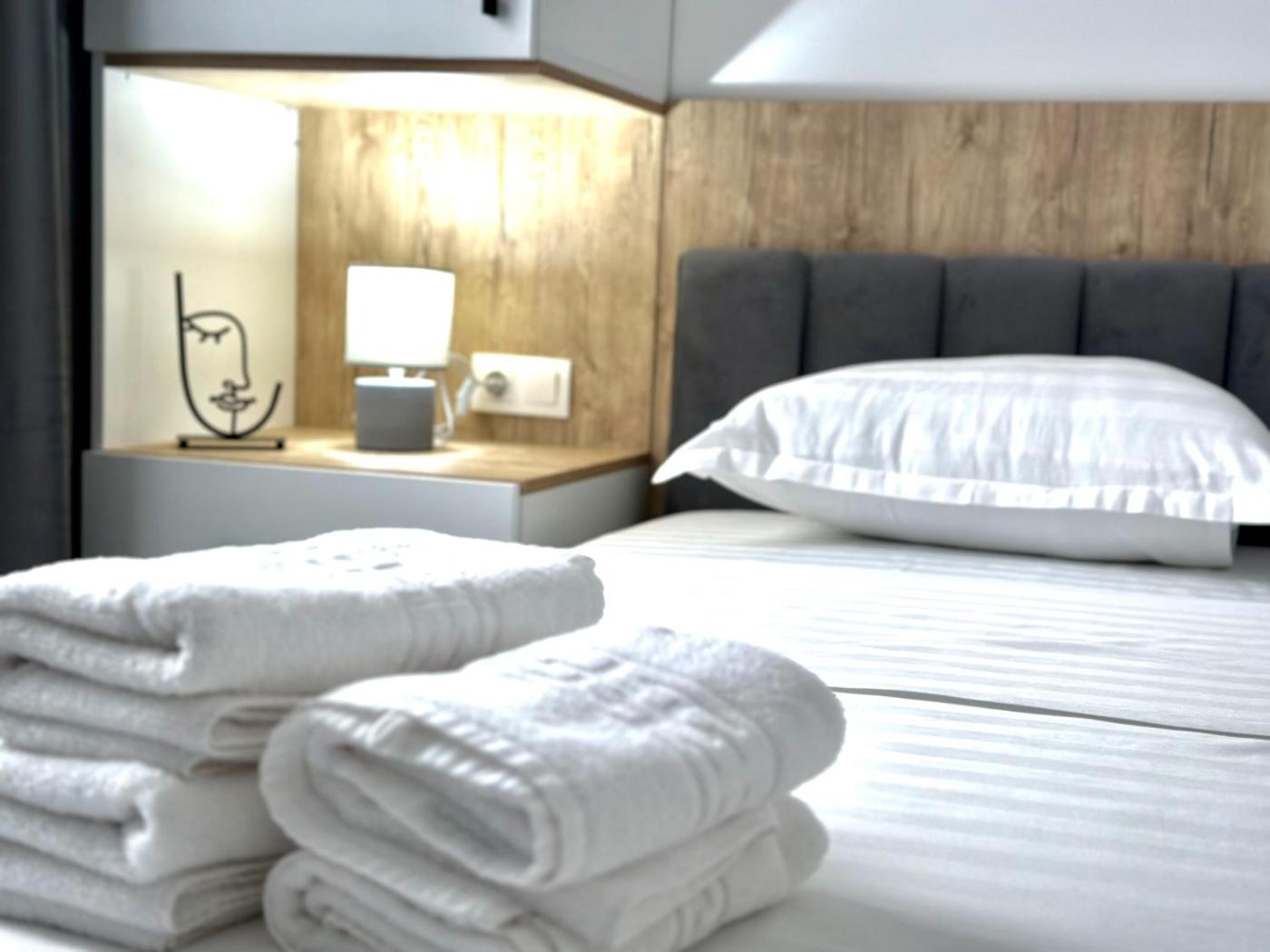 One-Bedroom Apartment. This apartment comprises 1 living room, 1 separate bedroom and 1 bathroom with a bath and free toiletries. Meals can be prepared in the kitchen, which comes with a stovetop, a refrigerator, a dishwasher and kitchenware. This apartment is air-conditioned and features a seating area with a TV, a washing machine, a tea and coffee maker, a dining area, as well as a wardrobe. The unit offers 2 beds.