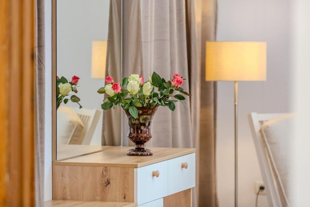 One-Bedroom Apartment. This spacious apartment comes with 1 living room, 1 separate bedroom and 1 bathroom with a shower and bathrobes. Guests can make meals in the kitchen that features a stovetop, a refrigerator, kitchenware and a microwave. This apartment has a tea and coffee maker, flat-screen TV with cable channels, ancourtyard view, as well as chocolate for guests. The unit has 2 beds.