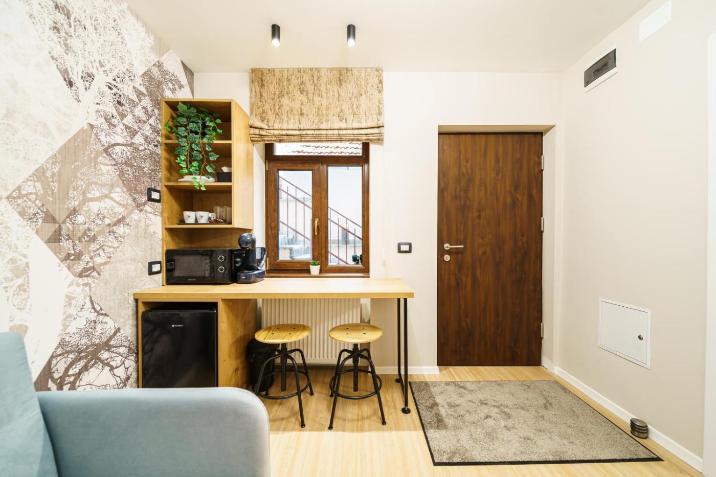 One-Bedroom Apartment. Featuring a private entrance, this apartment is comprised of 1 living room, 1 separate bedroom and 1 bathroom with a shower and a hairdryer. Guests can make meals in the fully equipped kitchenette that features a refrigerator, kitchenware and a microwave. Boasting a terrace with ancourtyard view, this apartment also offers a tea and coffee maker and a flat-screen TV. The unit offers 2 beds. ;