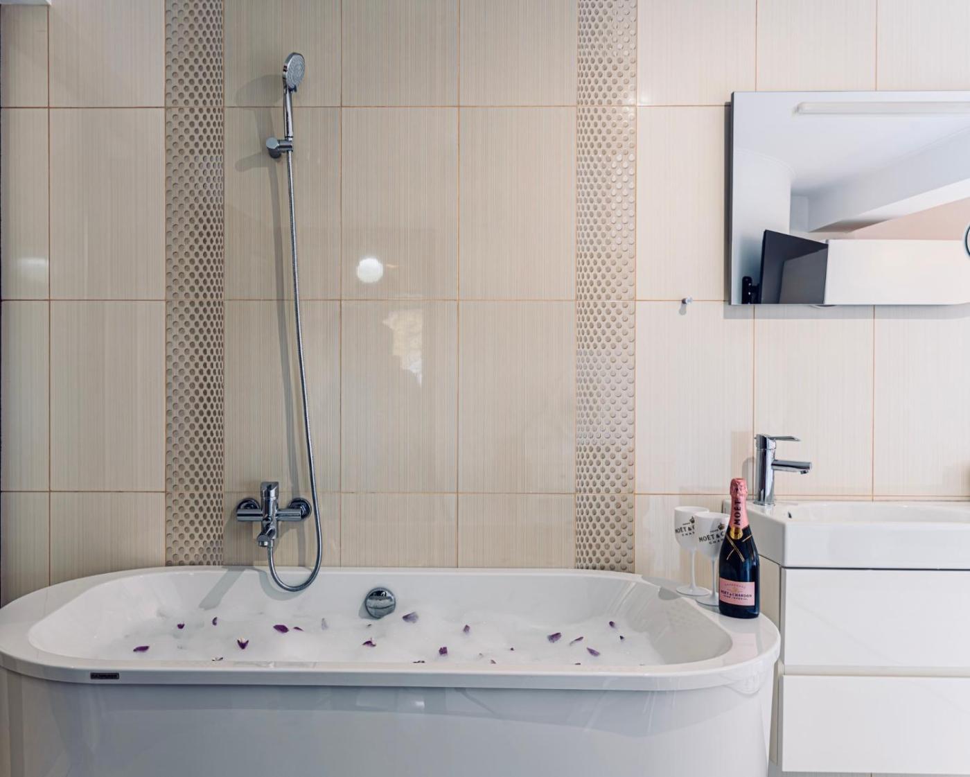 Deluxe Villa. The fireplace is the standout feature of this villa. This spacious villa comes with 1 living room, 5 separate bedrooms and 4 bathrooms with a walk-in shower and free toiletries. Guests will find a stovetop, a refrigerator, a dishwasher and kitchenware in the well-equipped kitchen. The villa also includes a barbecue. The villa features a washing machine, a private entrance, soundproof walls, a flat-screen TV with streaming services, as well as garden views. The unit has 7 beds.
