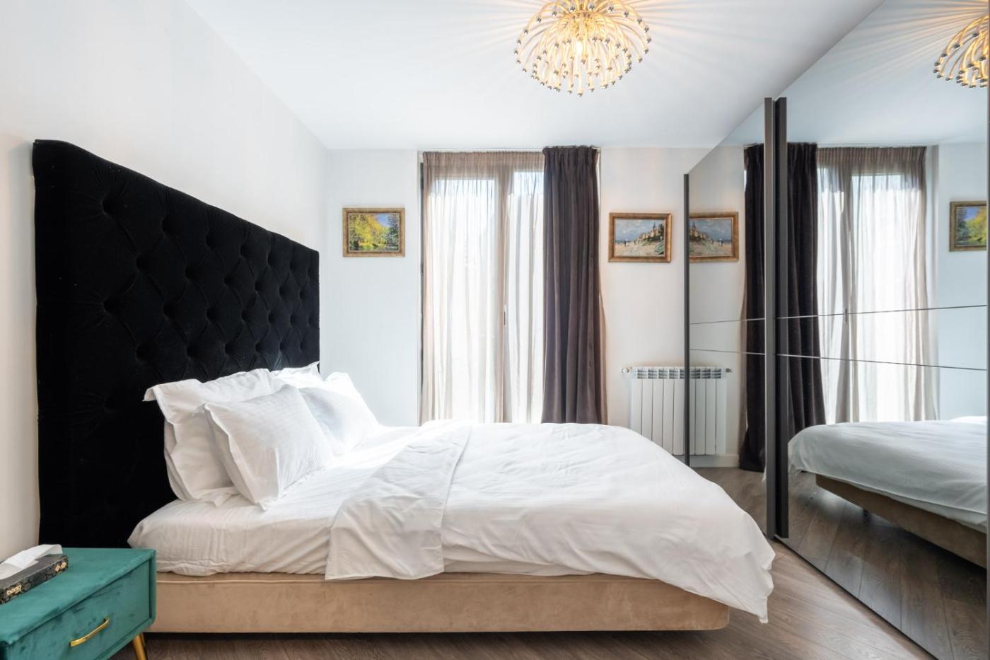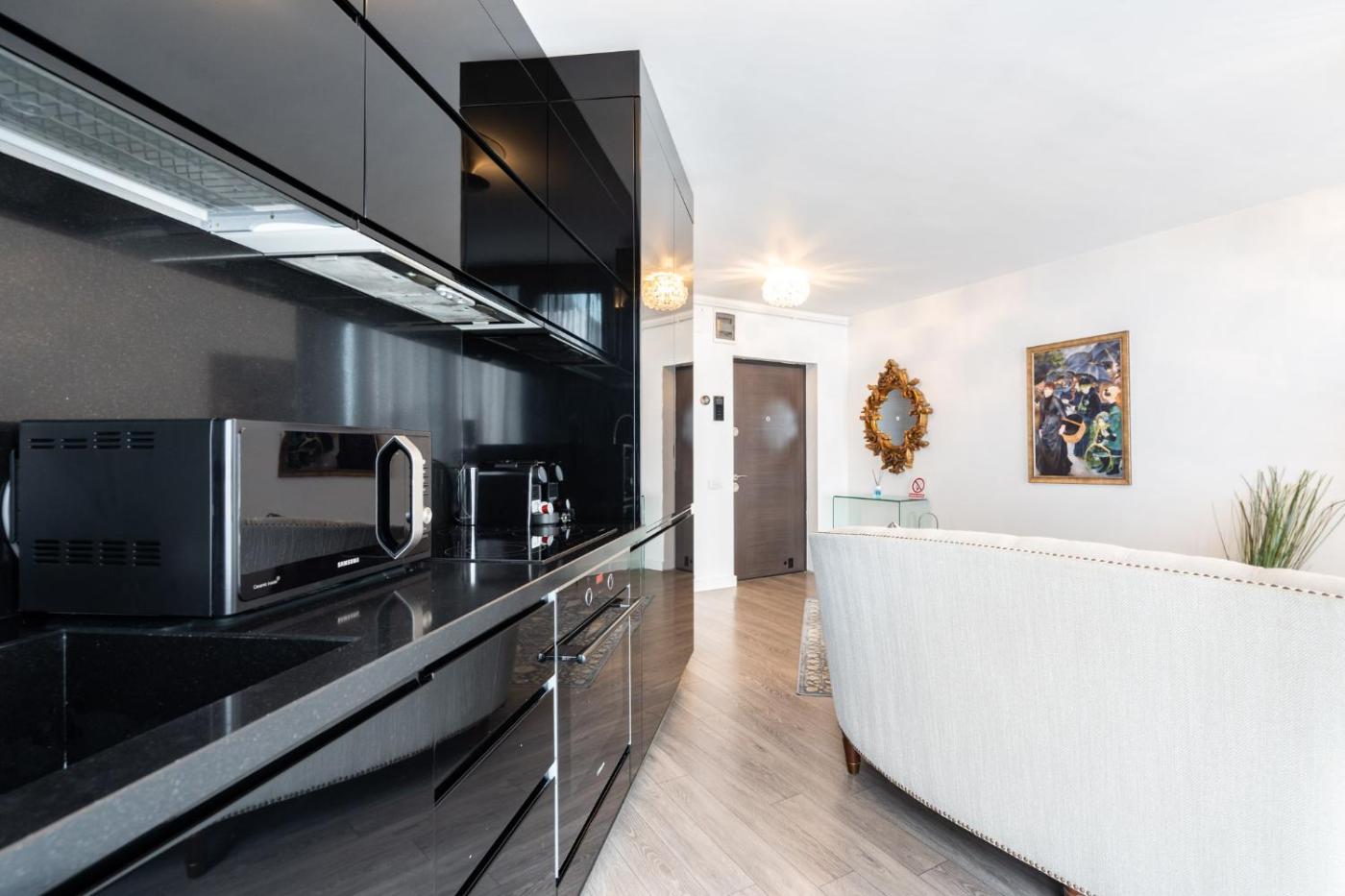 One-Bedroom Apartment. In the kitchen, guests will find a stovetop, a refrigerator, kitchenware and an oven. This apartment is air-conditioned and has a seating area with a flat-screen TV, a washing machine, a tea and coffee maker, a dining area, as well as a wardrobe. The unit has 1 bed.