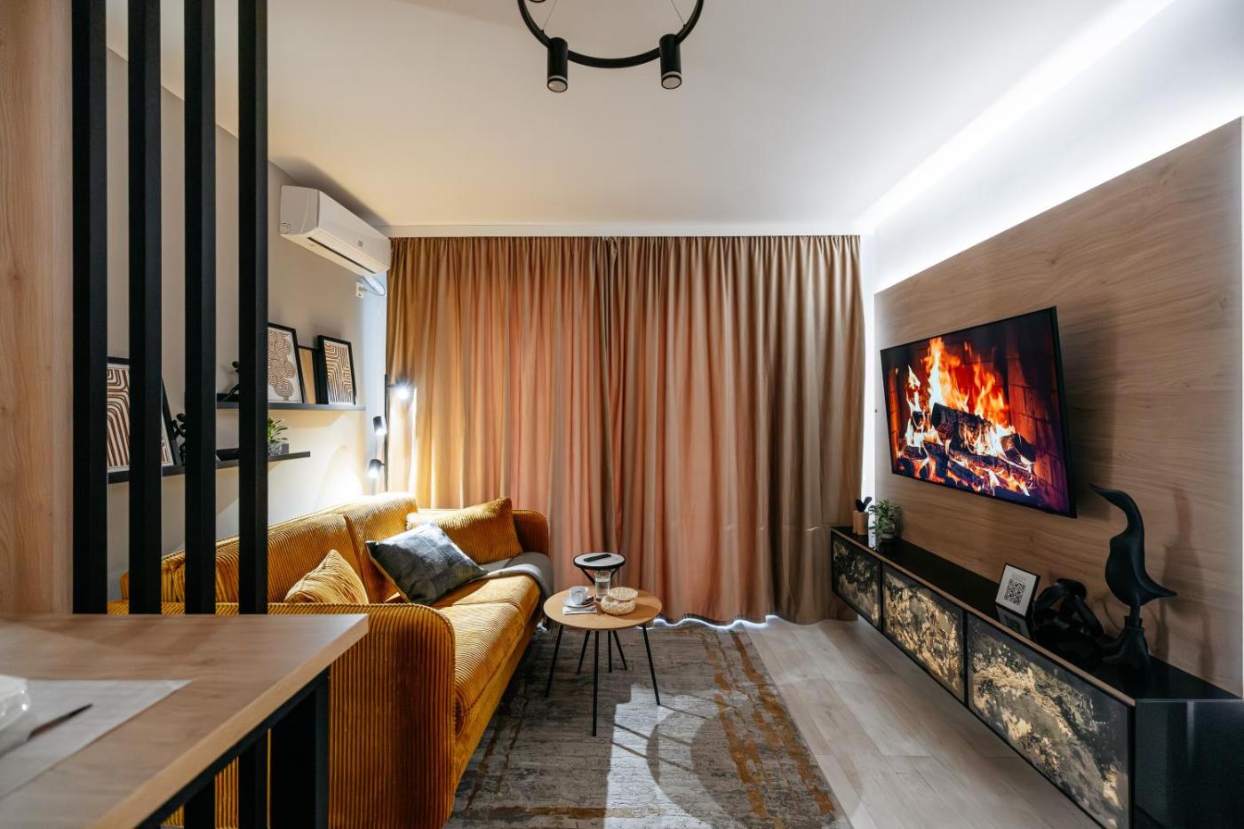 One-Bedroom Apartment with Balcony. This apartment comes with 1 living room, 1 separate bedroom and 1 bathroom with a walk-in shower and free toiletries. The well-fitted kitchen has a stovetop, a refrigerator, a dishwasher and kitchenware. The air-conditioned apartment features a flat-screen TV, a washing machine, a tea and coffee maker, a dining area as well as ancourtyard view. The unit has 2 beds.
