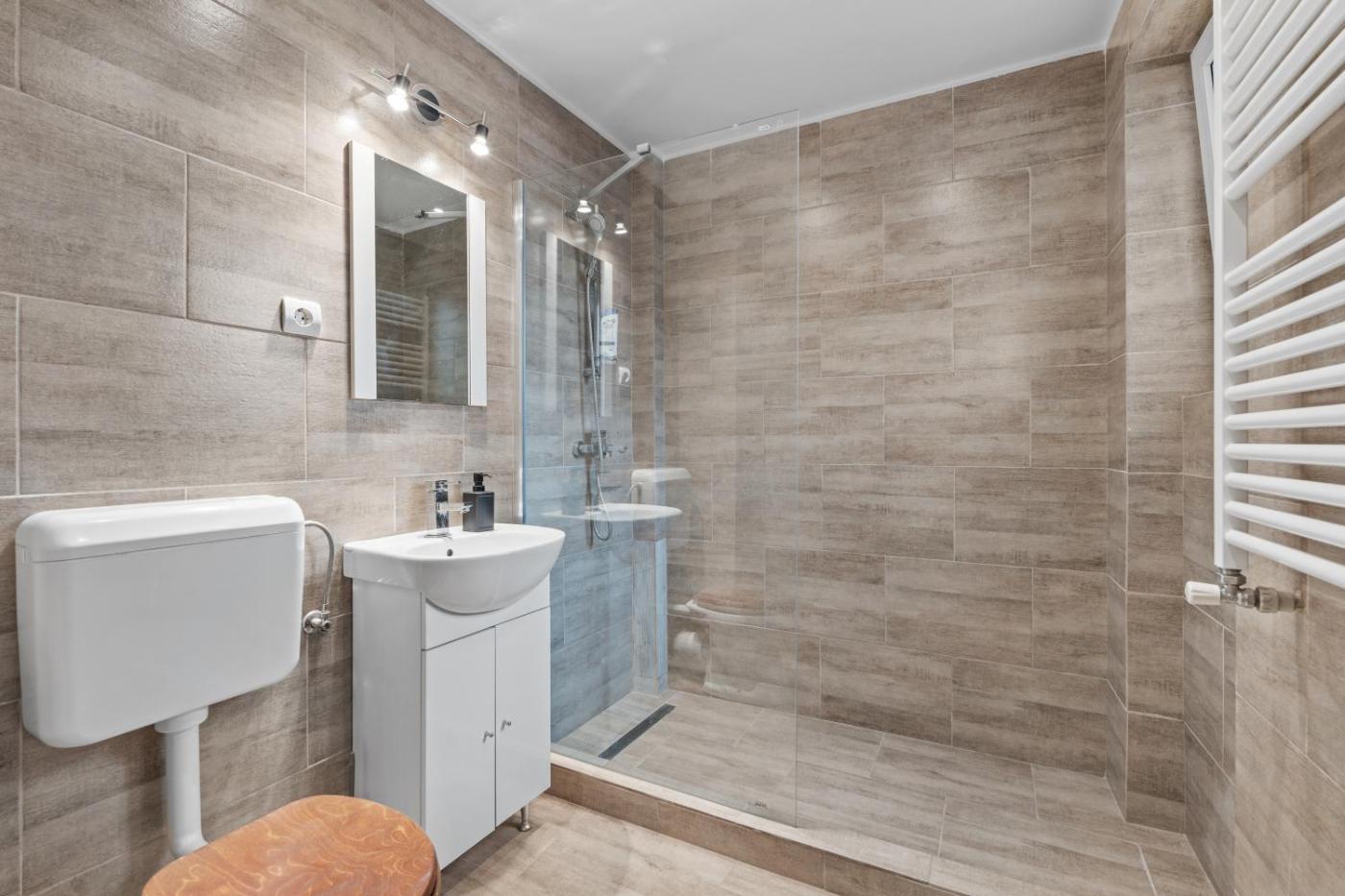 One-Bedroom Apartment. The air-conditioned apartment features 1 bedroom and 1 bathroom with a shower and a hairdryer. In the kitchen, guests will find a refrigerator, kitchenware, a microwave and a tea and coffee maker. Featuring a balcony with ancourtyard view, this apartment also provides a washing machine and a flat-screen TV with streaming services. The unit offers 1 bed.