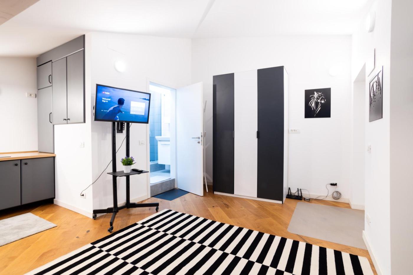 One-Bedroom Apartment. Boasting a private entrance, this air-conditioned apartment features 1 bedroom and 1 bathroom with a hairdryer. Meals can be prepared in the kitchen, which has a stovetop, a refrigerator and an electric kettle. The apartment features a washing machine, a sofa, heating, as well as a flat-screen TV. The unit has 1 bed.