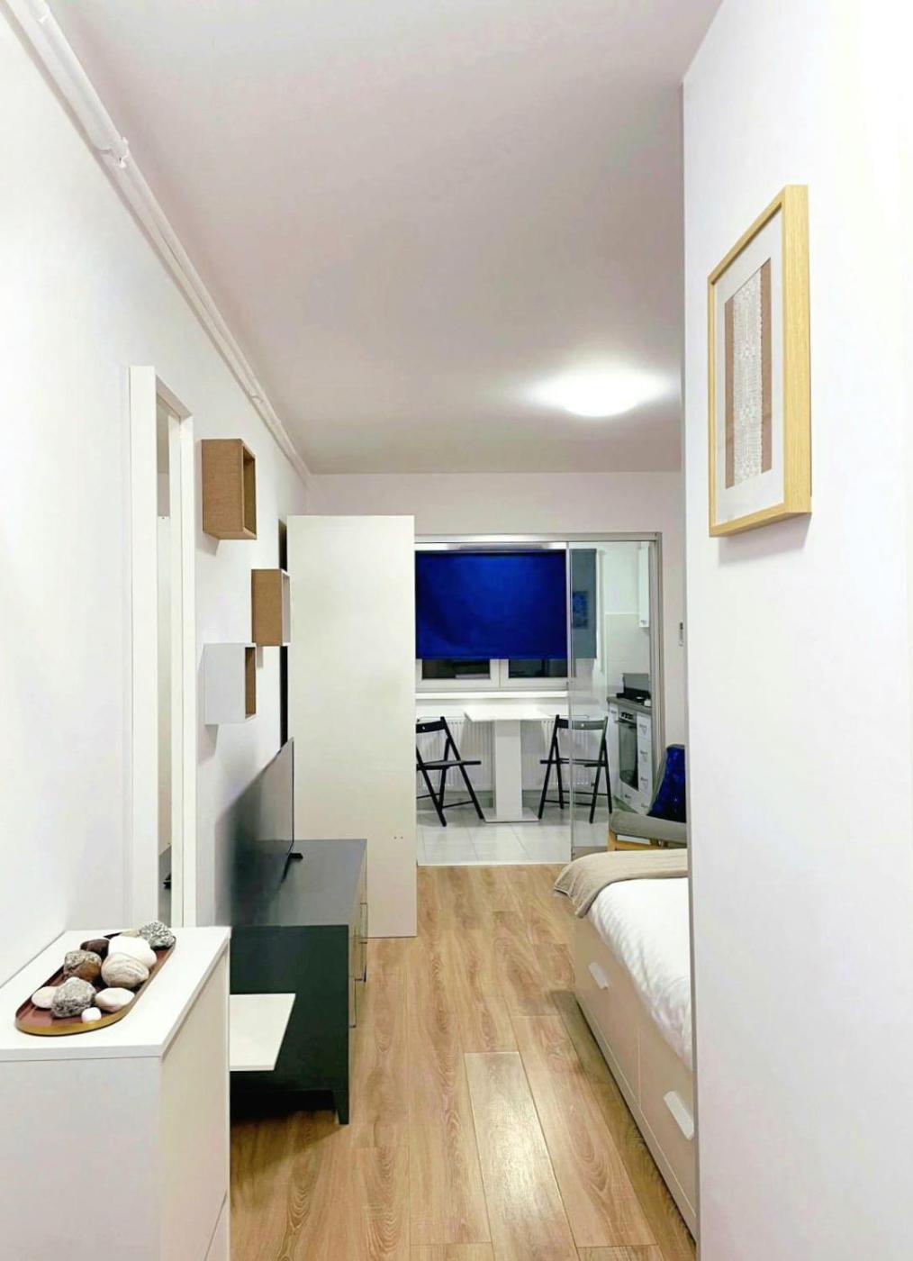 One-Bedroom Apartment. Boasting a private entrance, this air-conditioned apartment features a kitchen, 1 bedroom and 1 bathroom with a shower and a hairdryer. Guests can make meals in the kitchen that has a stovetop, a refrigerator, kitchenware and an oven. The apartment has parquet floors, a seating area with a flat-screen TV, a washing machine, a coffee machine as well as city views. The unit has 1 bed.