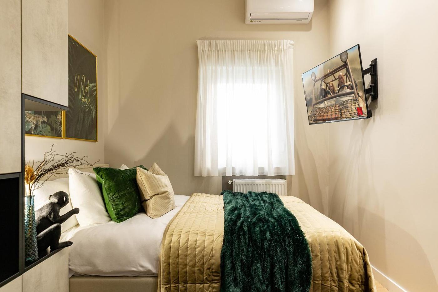 Two-Bedroom Apartment. The air-conditioned apartment features 2 bedrooms, 1 bathroom and a kitchen. The kitchen is equipped with a stovetop, a refrigerator and an oven. The spacious apartment provides a flat-screen TV with cable channels, a washing machine, a tea and coffee maker and heating. The unit offers 3 beds.