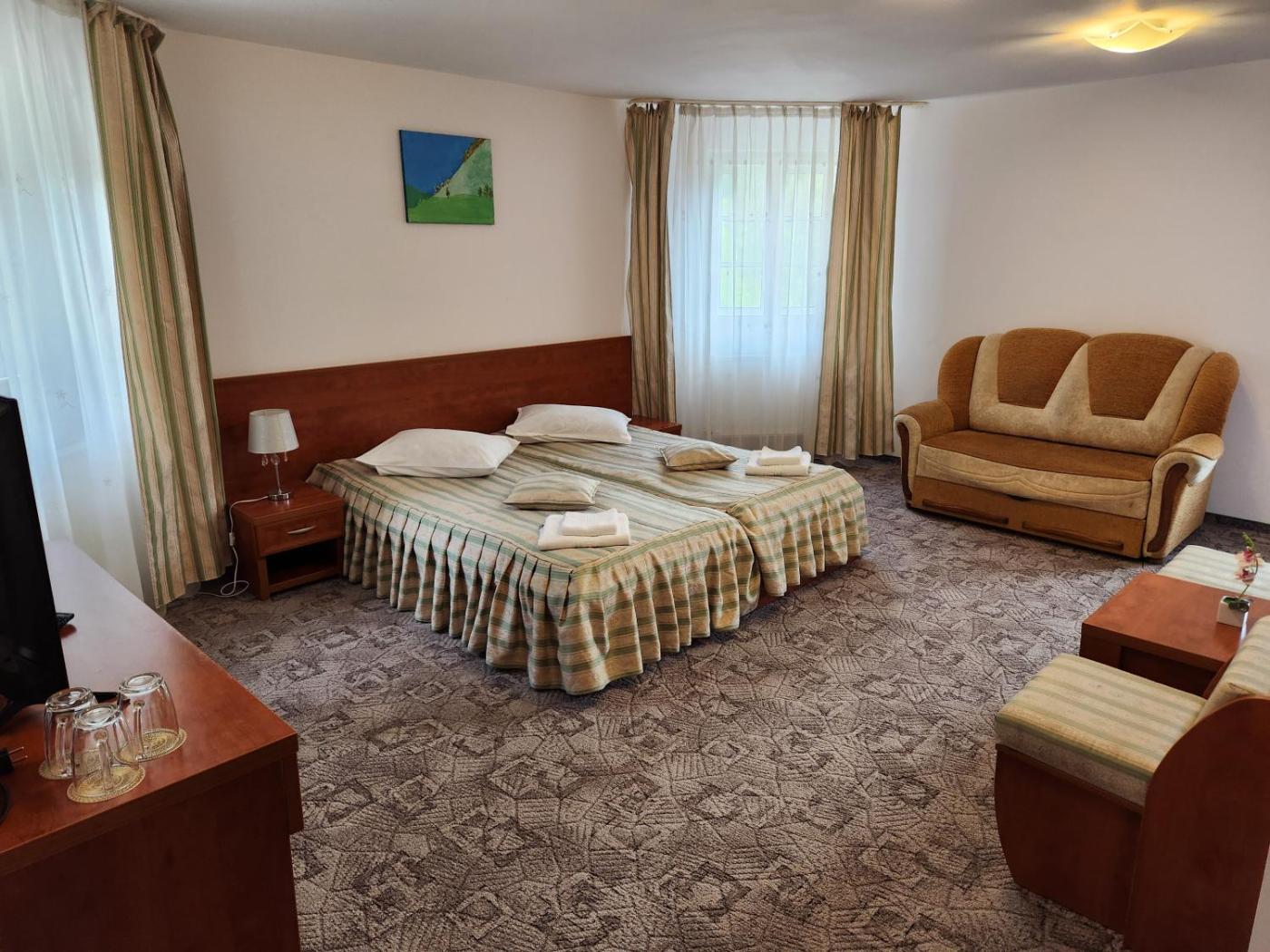 The bright rooms of Casa Minerva come carpeted floors, a flat-screen TV and a refrigerator. Each room includes a private bathroom with a shower. Some rooms offer views of the Caraiman Peak and Heroes Cross, while from others guests can see Gârbova Peak.