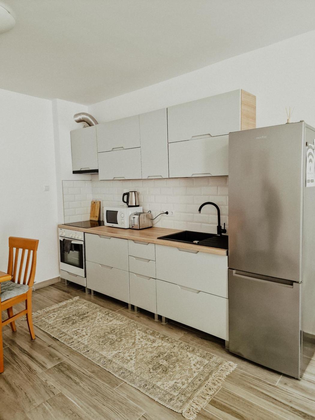 One-Bedroom Apartment. Featuring a private entrance, this apartment consists of 1 living room, 1 separate bedroom and 1 bathroom with a walk-in shower and a hairdryer. The well-fitted kitchen features a stovetop, a refrigerator, kitchenware and an oven. The apartment is equipped with a tea and coffee maker, a seating area, a dining area as well as a wardrobe. The unit offers 2 beds.