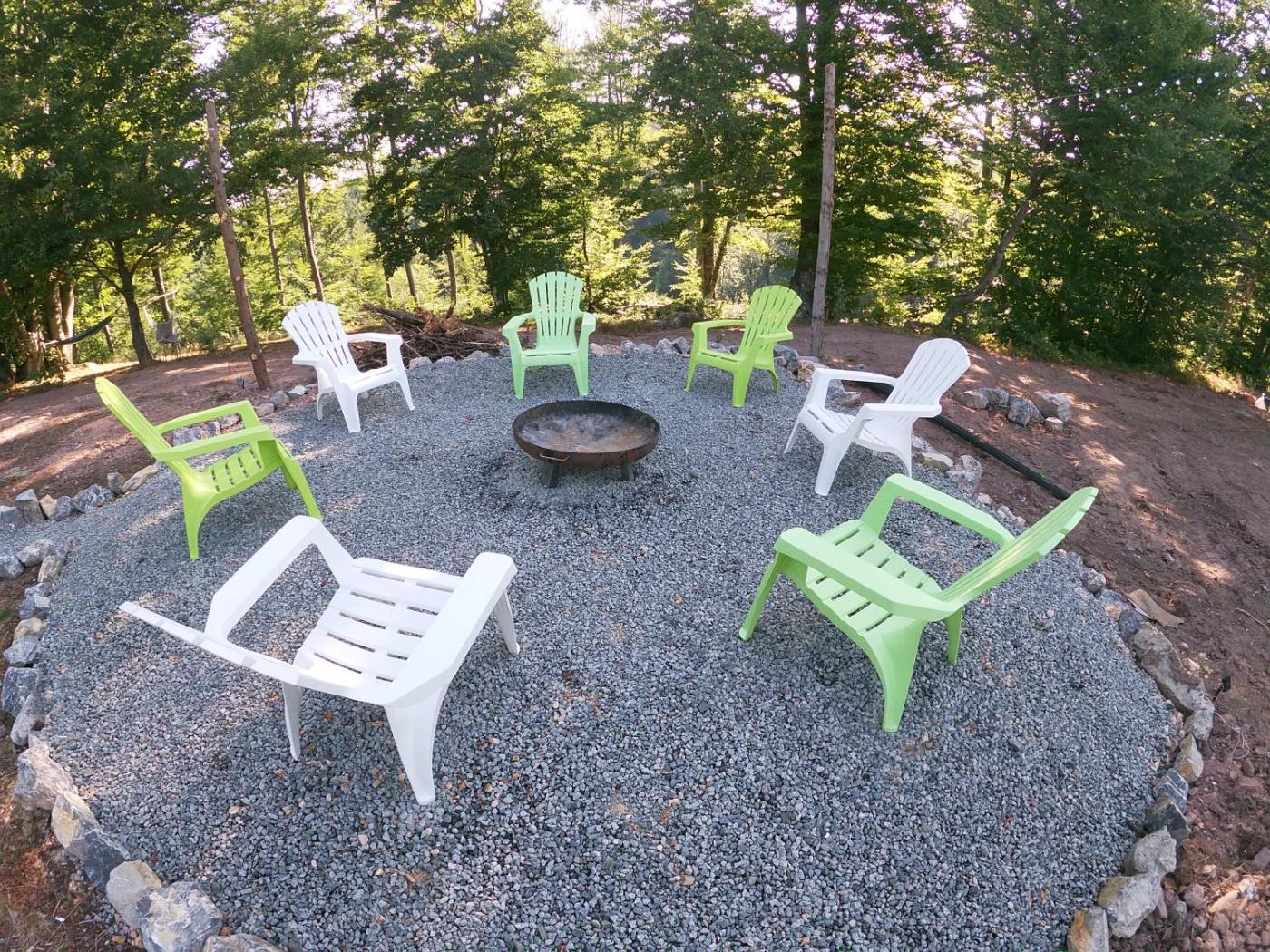 For guests with children, the campground provides an indoor play area and outdoor play equipment. Guests can also warm themselves near outdoor fireplace after a day of cycling.