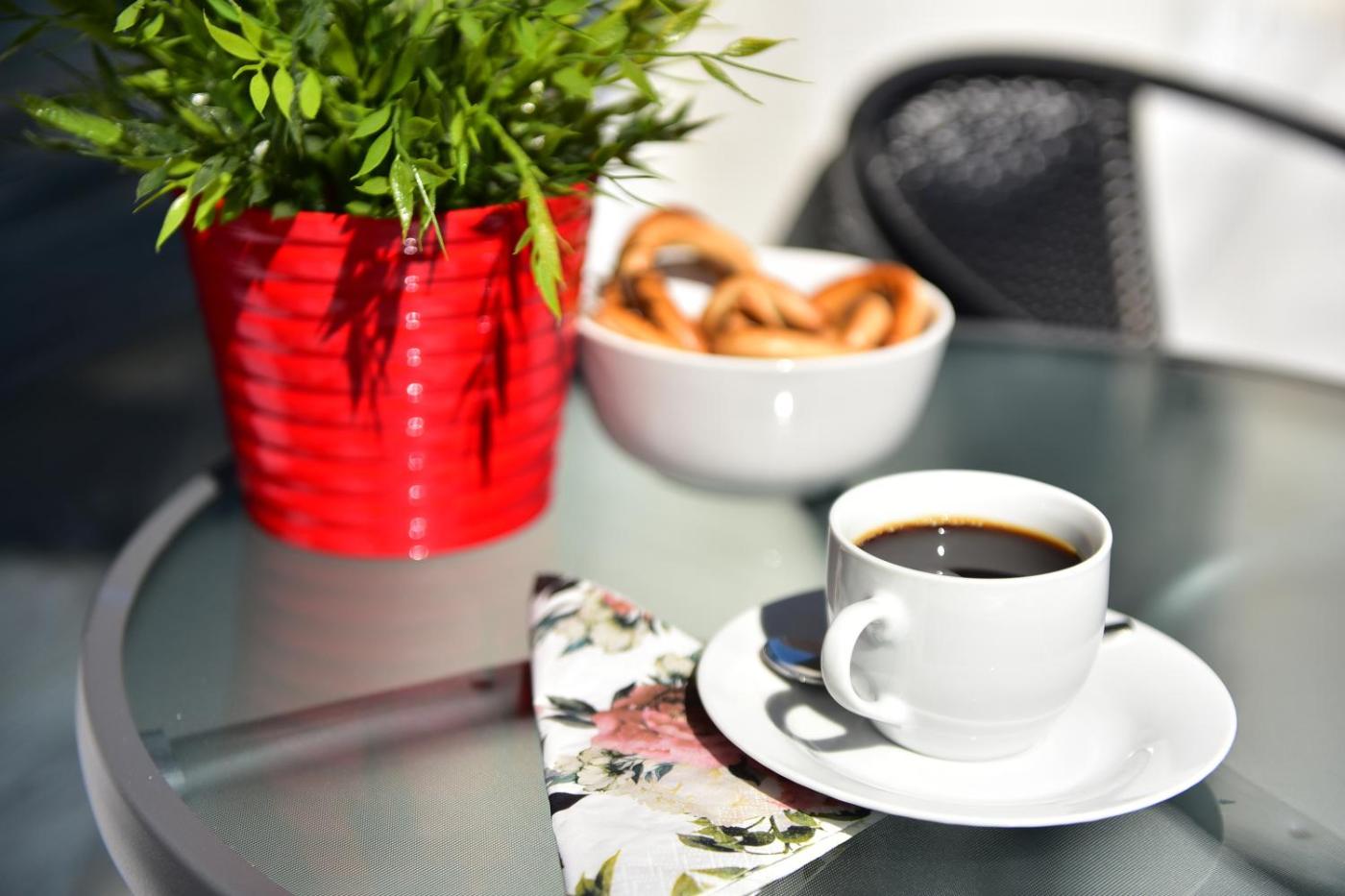 One-Bedroom Apartment. This apartment features 1 living room, 1 separate bedroom and 1 bathroom with a shower and free toiletries. The apartments kitchen, which has a refrigerator and an electric kettle, is available for cooking and storing food. Boasting a balcony with garden views, this apartment also features a washing machine and a flat-screen TV with cable channels. The unit has 2 beds.