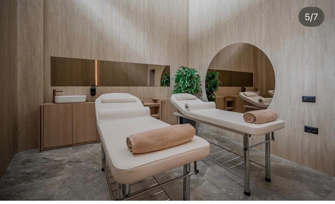 One-Bedroom Apartment. This apartment features a pool with a view, hot tub and sauna. In the well-equipped kitchen, guests will find a stovetop, a refrigerator, a dishwasher and kitchenware. The air-conditioned apartment features a flat-screen TV with streaming services, a washing machine, a private entrance, a minibar as well as sea views. The unit has 2 beds.