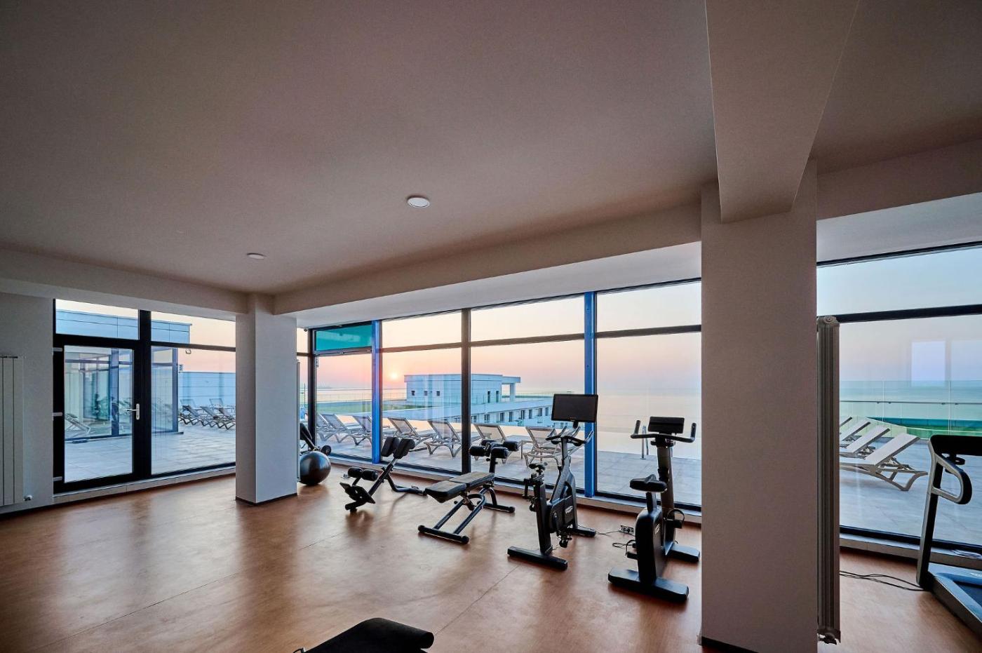 Situated in Mamaia, 100 metres from Mamaia Beach and 7 km from Siutghiol Lake, Azul Apartment in Infinity Beach Resort - parking offers a spa and wellness centre and air conditioning. This beachfront property offers access to a balcony, free private parking and free WiFi. The apartment has an outdoor swimming pool, sauna and a lift.