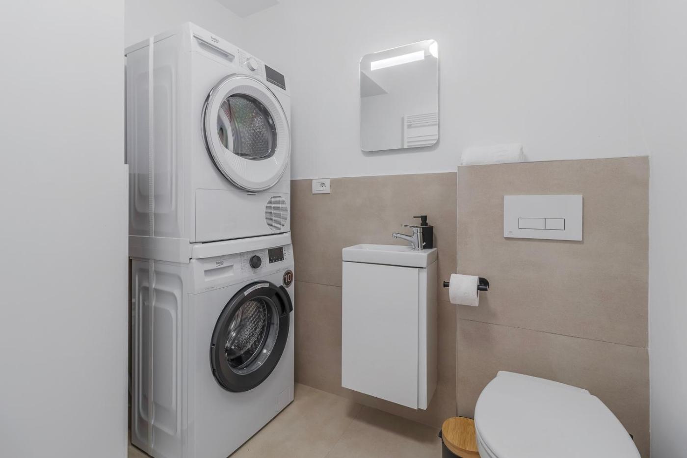 One-Bedroom Apartment. This spacious apartment is comprised of 1 living room, 1 separate bedroom and 2 bathrooms with a walk-in shower and a bath. Guests can make meals in the kitchen that is fitted with a stovetop, a refrigerator, a dishwasher and kitchenware. This air-conditioned apartment includes a dining area, a flat-screen TV with streaming services a washing machine and a terrace. The unit offers 2 beds.