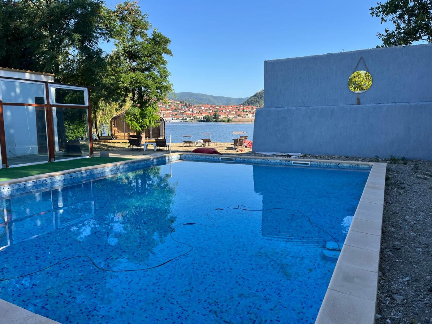 Situated in Orşova in the Mehedinti region and Iron Gate I reachable within 14 km, CHALET Orsova features accommodation with free WiFi, a childrens playground, a private beach area and free private parking.on the beachfront, this property has pool with a view, an open-air bath and a garden. Boasting family rooms, this property also provides guests with a sun terrace.