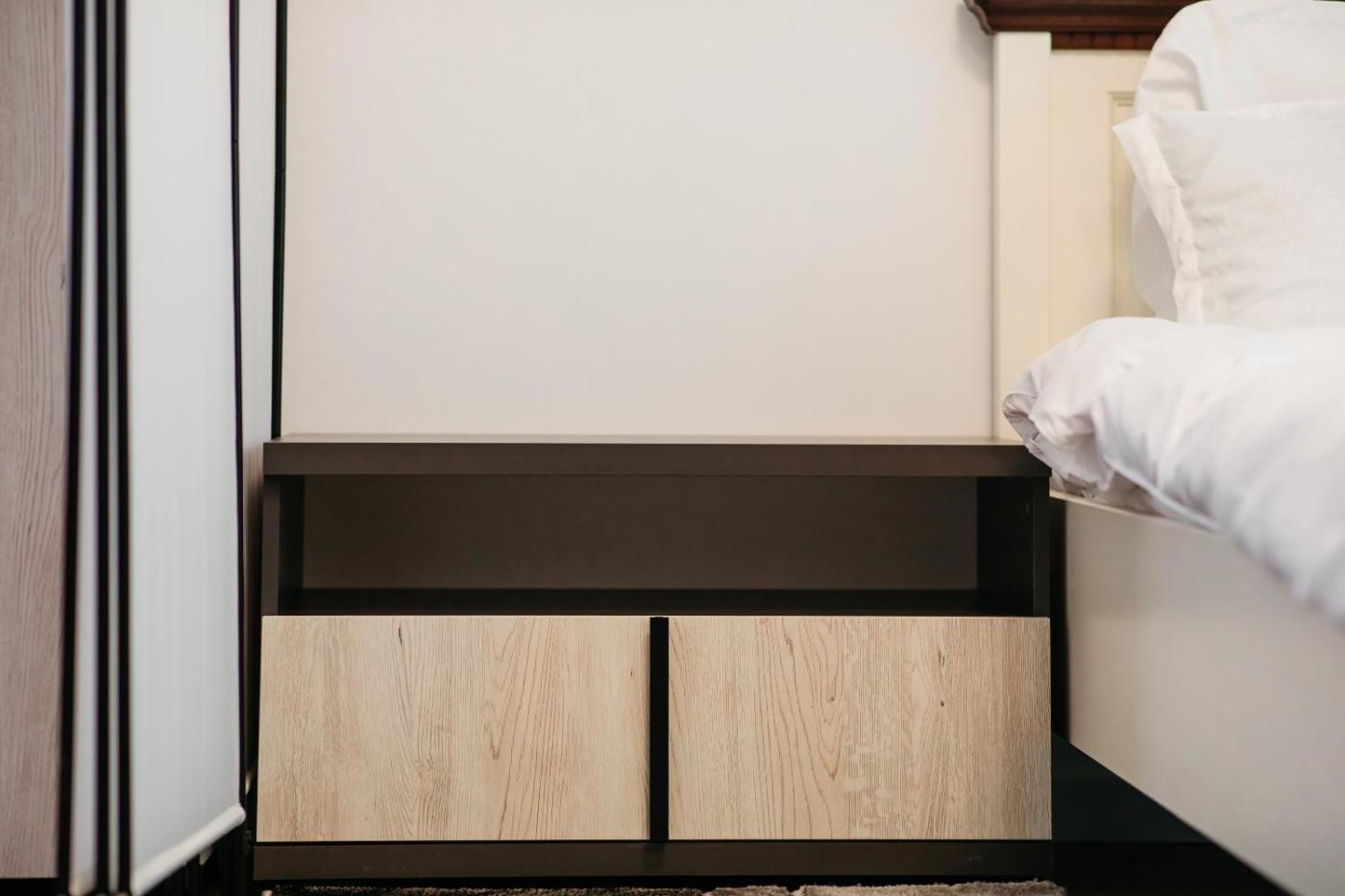 One-Bedroom Apartment. This apartment comprises 1 living room, 1 separate bedroom and 1 bathroom with a shower. In the kitchen, guests will find a stovetop, a refrigerator, an oven and a microwave. Featuring a balcony, this apartment also provides a tea and coffee maker, a seating area and a flat-screen TV. The unit offers 2 beds.