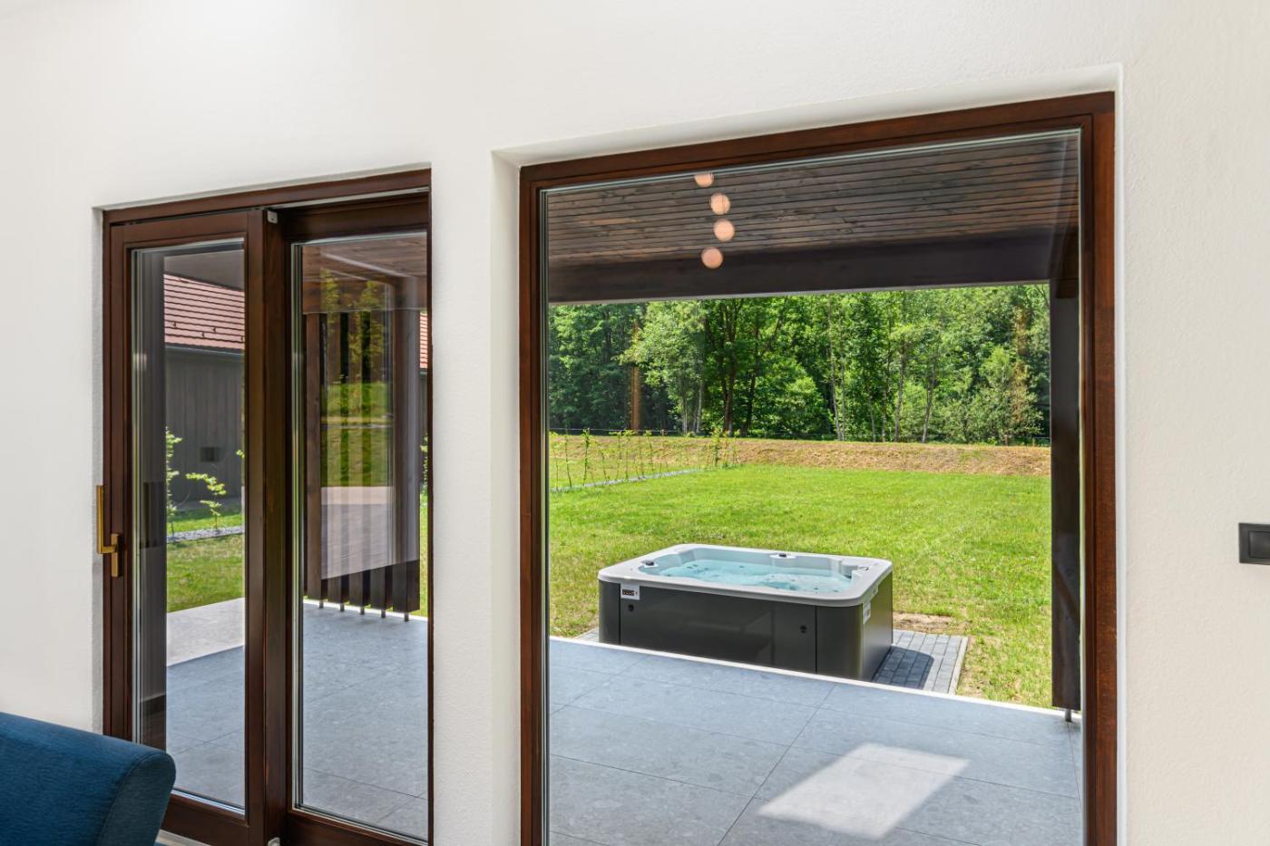 Villa with Jacuzzi. This villas standout feature is the hot tub. Boasting a private entrance, this air-conditioned villa includes 1 living room, 2 separate bedrooms and 2 bathrooms with a walk-in shower and a hairdryer. Meals can be prepared in the kitchen, which is fitted with a stovetop, a refrigerator, a dishwasher and kitchenware. Featuring a terrace with garden views, this villa also offers soundproof walls and a flat-screen TV with cable channels. The unit has 4 beds.