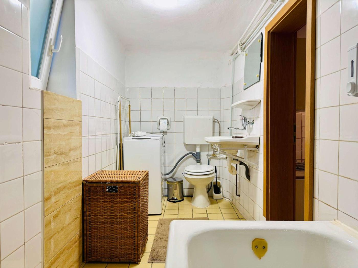 Apartment. This spacious apartment features 1 living room, 1 separate bedroom and 1 bathroom with a bath and free toiletries. Meals can be prepared in the kitchen, which has a stovetop, a refrigerator, kitchenware and an oven. The apartment features a TV with cable channels, a washing machine, a tea and coffee maker, heating as well as city views. The unit has 3 beds.
