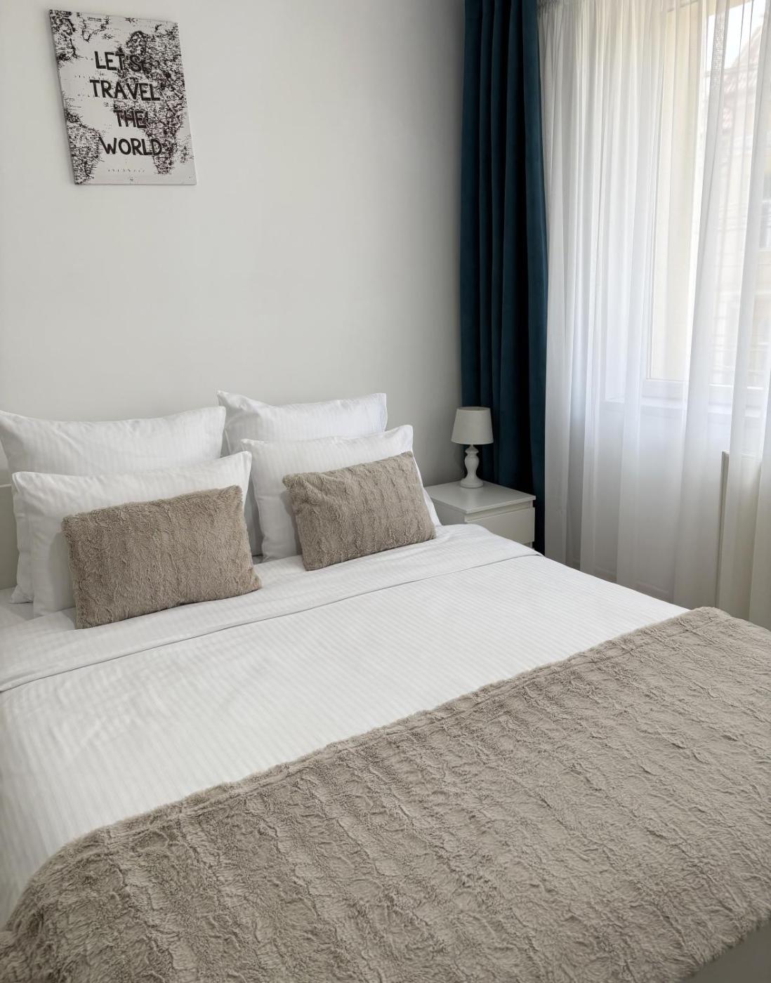 Two-Bedroom Apartment. This apartment includes 1 living room, 2 separate bedrooms and 1 bathroom with a walk-in shower and free toiletries. In the kitchen, guests will find a stovetop, a refrigerator, a dishwasher and an oven. The air-conditioned apartment offers a flat-screen TV with streaming services, a washing machine, a tea and coffee maker, a wardrobe as well as city views. The unit has 3 beds.