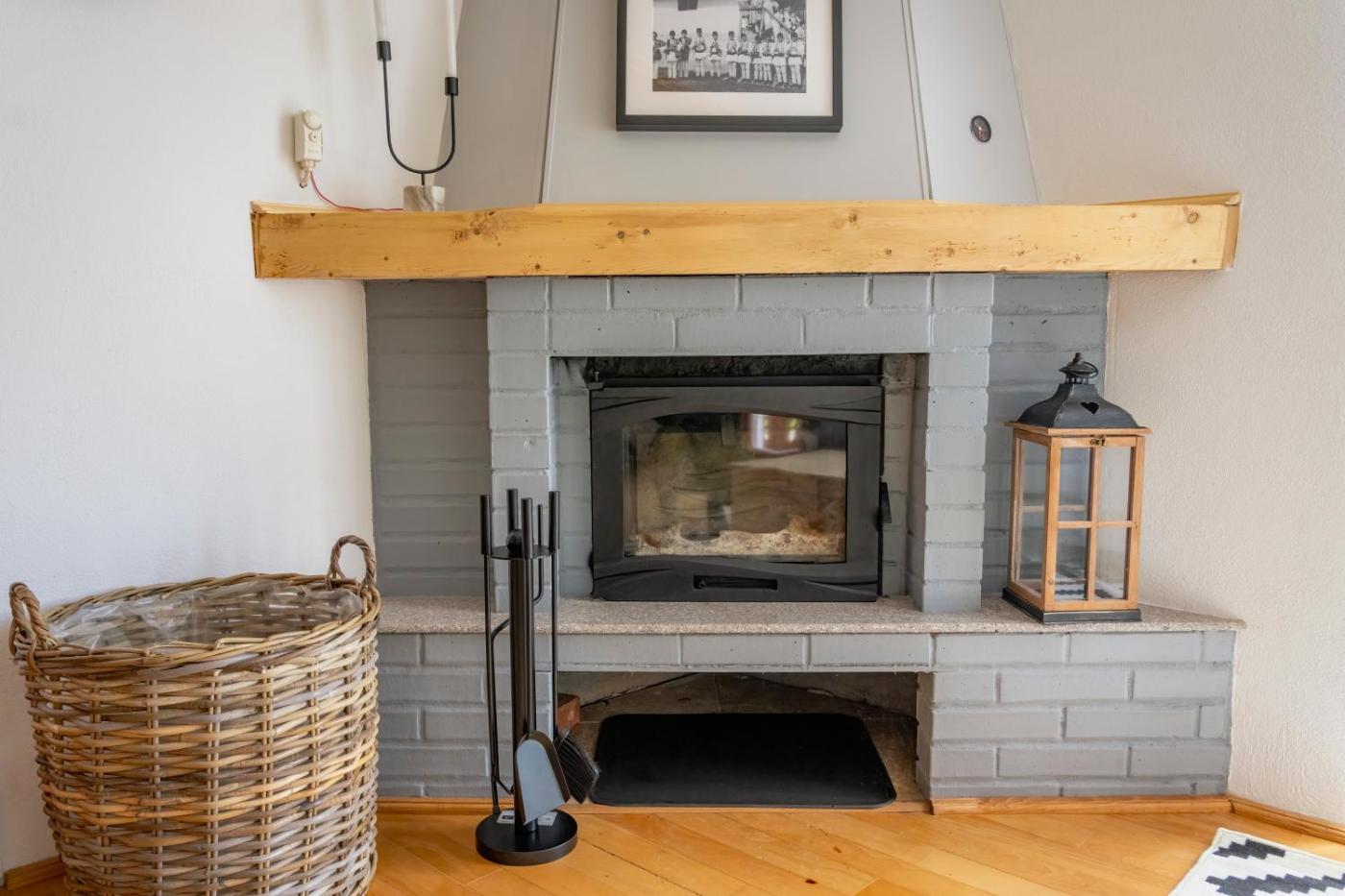 Two-Bedroom House. This holiday homes special feature is the fireplace. Featuring a private entrance, this air-conditioned holiday home consists of 1 living room, 2 separate bedrooms and 1 bathroom with a walk-in shower and a hairdryer. Guests will find a stovetop, a refrigerator and kitchenware in the kitchen. The holiday home also offers a barbecue. Boasting a terrace with garden views, this holiday home also provides a tea and coffee maker and a flat-screen TV with streaming services. The unit offers 4 beds.
